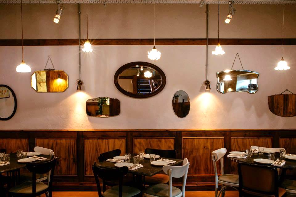 The 118-cover restaurant can be found tucked away on the lower ground floor behind an unassuming front door on Thayer Street, decorated in a rustic, shabby-chic style, with worn wooden floors and furniture. Hanging lampshades, exposed brick walls ornamented with frames and bookcases, and knick-knacks in every corner help diners feel instantly at home. Filled with bright light, it’s an earthy setting with plenty of hanging plants giving a greenhouse feel, honouring the restaurant’s name and the Mother Earth deity to which it makes reference.