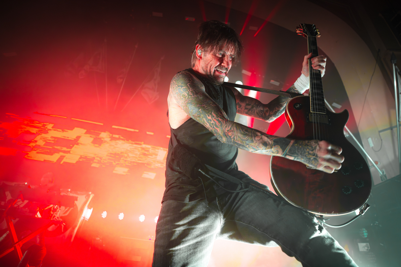 Firing up with Voodoo People, MC and current lead vocalist Maxim is a force to be reckoned with. Swiftly following this ecstatic opener is huge highlight Omen, a thrilling wild ride, everyone chanting the irresistible chorus; Liam Howlett’s programming coupled with Leo Crabtree’s drumming is a match made in industrial rock heaven. Playing rambunctious new track off what’s expected to be their forthcoming album, the group perform Fight, which is as energetic as anything else in the band’s oeuvre. Maxim is a ball of fire on stage, playing to the photographer’s angles and even doing a fly kick at the camera.