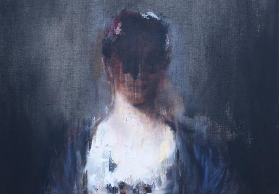 Jake Wood Evans’ fascination with the works of the old masters continues in a series of paintings that, as previously, rework the famous originals (here exclusively British painters), which seem, like forgotten memories lost to history, to materialise faintly from the black canvas, more felt than seen. However, whereas before the artist’s pieces managed to synthesise the original, in the midst of the impressionistic brushes of colour, to locate and focus on those details that were the original master’s raison d’etre – such as the penetrating gaze and shimmering silk of Velasquez’s Pope Innocent X, or the ruby lips beneath a coquettish nose in Rembrandt’s Portrait of a Young Woman – this time the impression is one more akin to violence and vandalism. Faces are scratched out or appear as if melting, like ghoulish ghosts in a gothic horror novel.