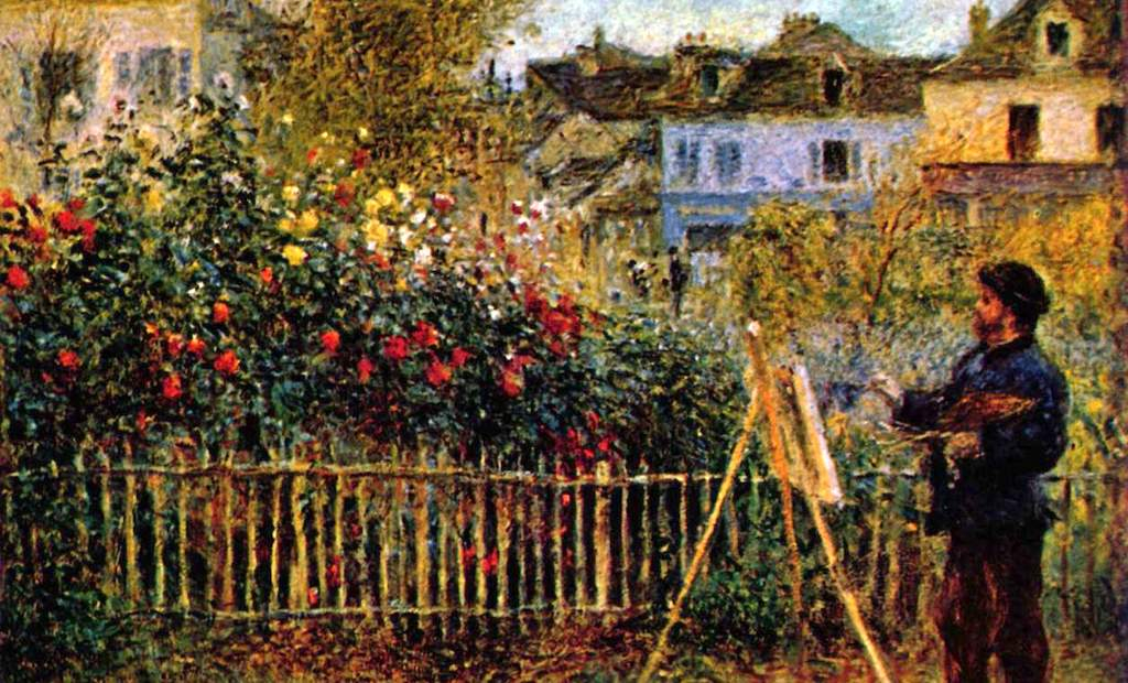 During the time the two spent in Argenteuil, a commune located to the northwest of Paris, Monet was slightly obsessed with the garden. He painted it extensively, depicting, in a classic Impressionist fashion, the seasons passing. In this artwork, Renoir captured his friend painting the bright red dahlias at his easel. The houses around are visible, and the garden is the focal point of the scene, evoking a sense of calmness and serenity.