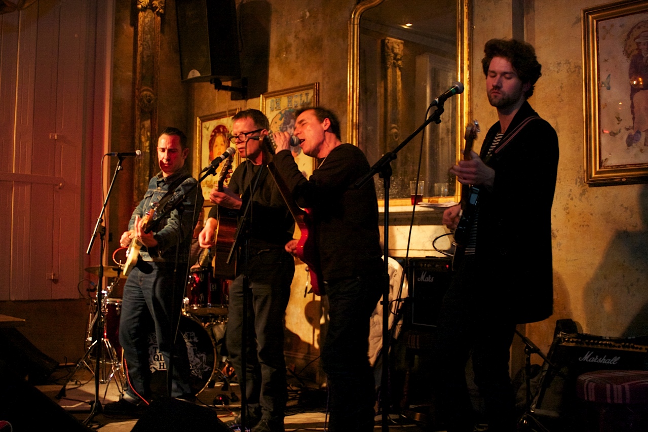 There is a palpable degree of nervousness as they take the stage in the intimate Old Queen’s Head venue in Islington – despite their experience, it seems like they have to learn the ropes all over again, and matters aren’t helped by Henderson being hopelessly out of tune even before the first song. However, this raggedness somehow works to their advantage: the first few tracks (including You’re All Over and the title track to their forthcoming album Here Come The Rubber Cops) start in shambolic fashion, before the band gel imperceptibly and gain confidence as the songs progress, as if they had stumbled on that final killer chord progression or harmony for the first time right there on stage.