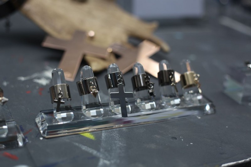 One of the stand-out pieces from the new MFP collection is the thick band ring with a dangling cross for detail; the ring is eye-catching, but also simple and beautifully designed. With a feel of medieval jewellery, the cross ring has been improved since last season and now has a softer feel with diamond detailing set into the ring and small square tickets dangling alongside the cross.