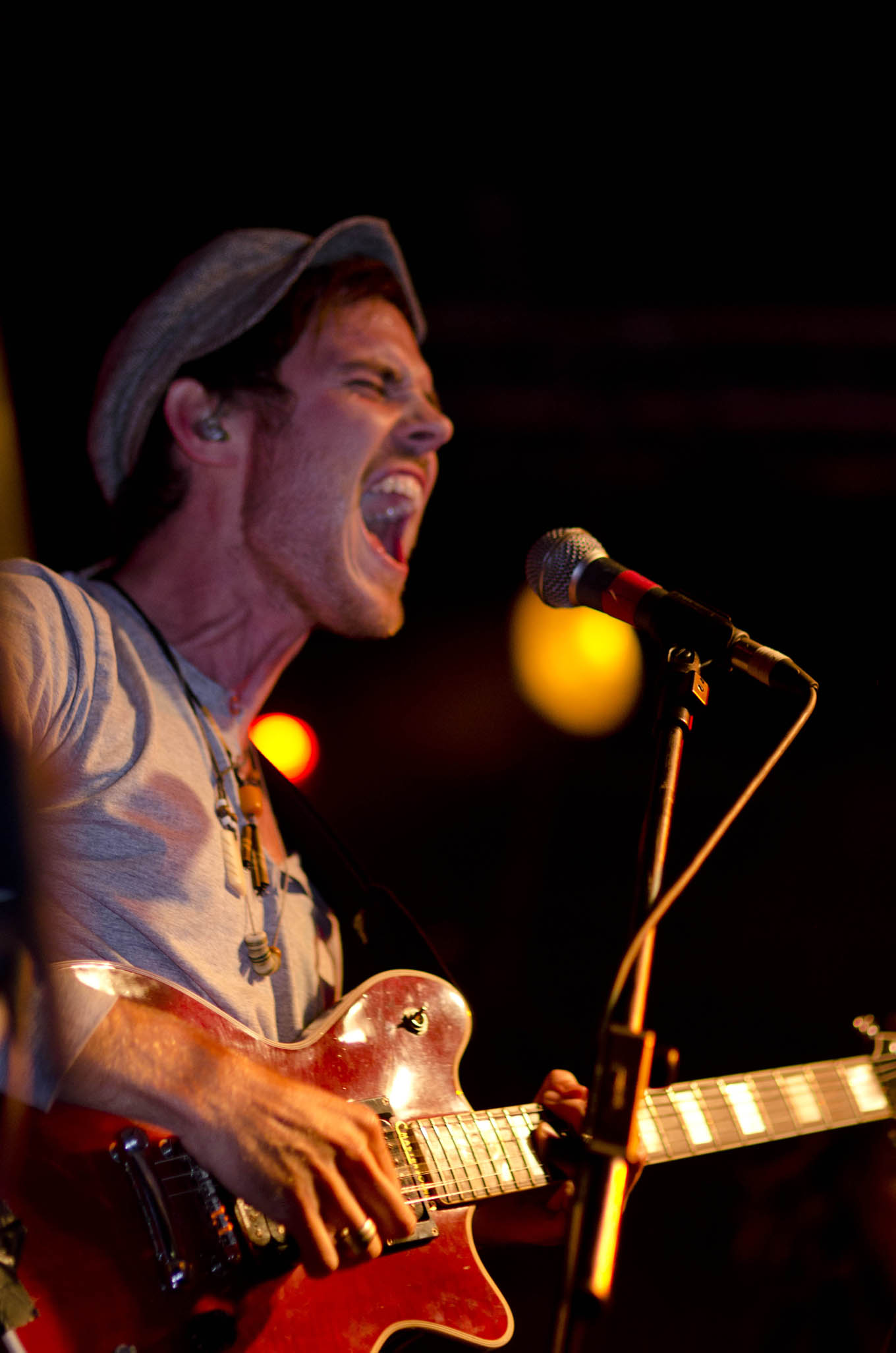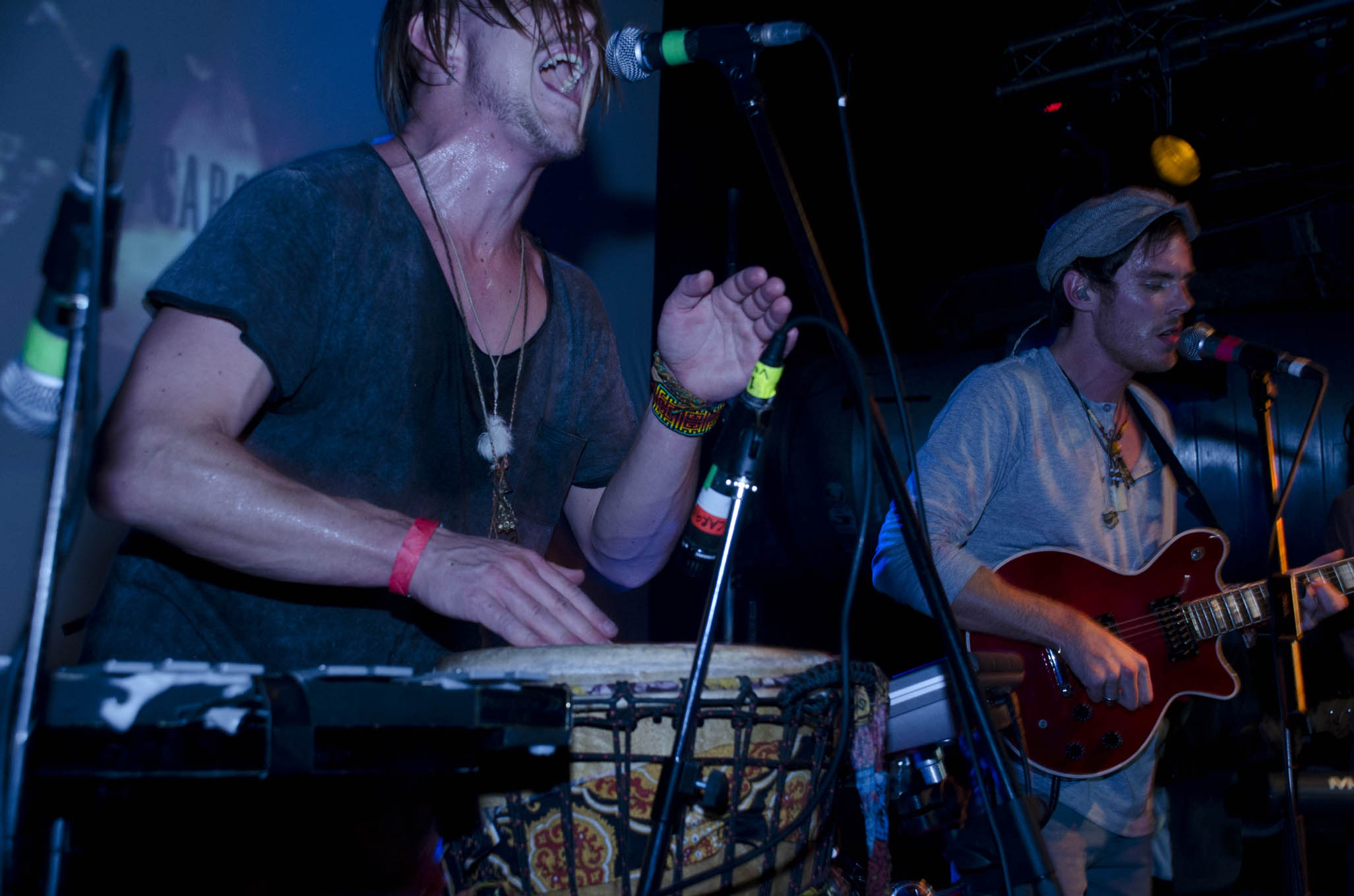 The highlight of the night, however, was undoubtedly Jackson Firebird. I try not to get too taken in by gimmickry, but what’s not to love about a big hairy Australian with a headband smacking the top of an upside-down recycle bin? Not much, that’s what. The furious barrage these guys let loose was exhausting just to watch. High-speed blues riffs gave way to death-metal shredding and double-kick in an instant. Taking turns at vocal duties, the guitarist’s gravelly bluesy growl worked as a nice counterpoint to the drummer’s fuzzed out, lightning bolt-esque vocals. Clearly a well-gigged band, they made their manic and unpredictable tempo changes look effortless and sailed through a set of hyperactive twists and turns with apparent ease: slide-heavy swamp-rock one minute, almost psychedelic-rock soloing the next, their sound brought to mind Radio Moscow, a little bit of the Black Keys and even fellow Aussies Spiderbait. They stole the show.