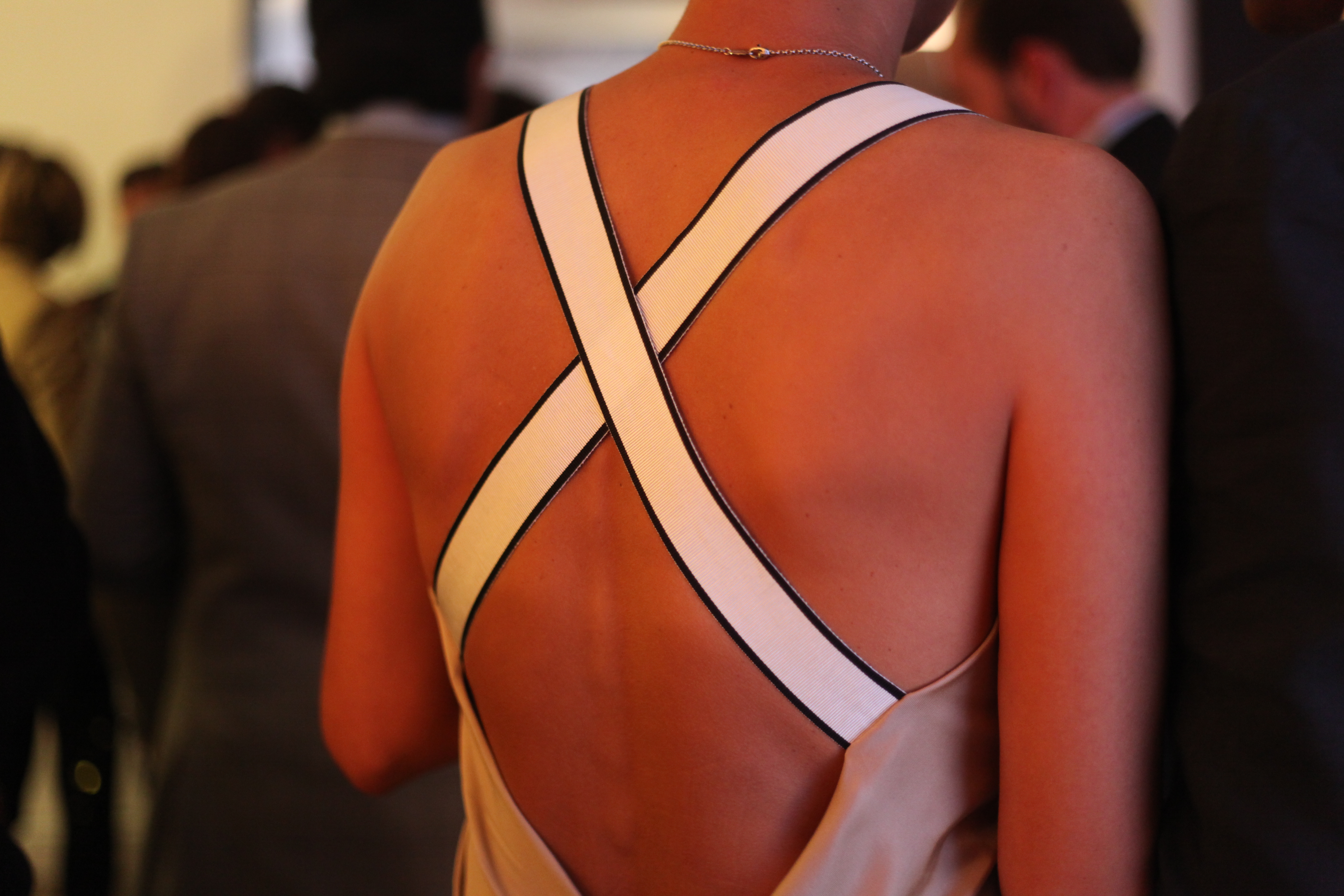 We were greeted at the door by waitresses, decked out in black dresses with sparkling collar detailing, holding Thienot champagne and elderflower or red apple soft drinks. The look of the night was leather leggings, tight jeans and white blouses with some fabulous jackets: I saw Chanel, D&G and YSL; it was all very stylish and understated, black was definitely black and monochrome looked set to stay.