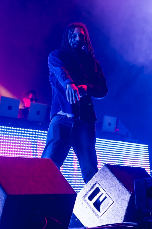 Creeping up to 8pm, the weather had remained kind and Crystal Castles took to the main stage. Dressed all in black with cropped hair dyed purple, Alice Glass goaded the audience with her unusual body movements, very Bjork like. Her voice was lost under the clash of the drums, but still remained haunting amongst producer Ethan Kath and drummer Christopher Chartrand. Alice may not have gone far if she was on BBC talent show The Voice, but their set was solid and very fan friendly; Alice Practise was a memorable moment.