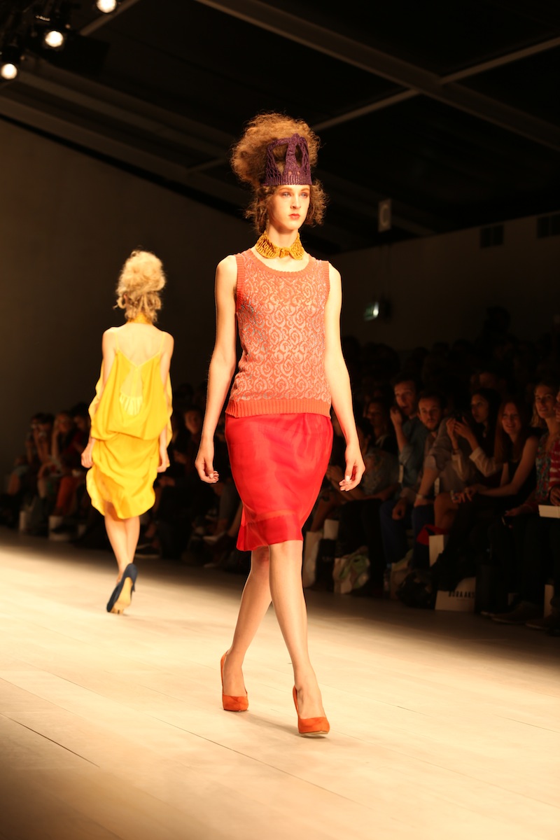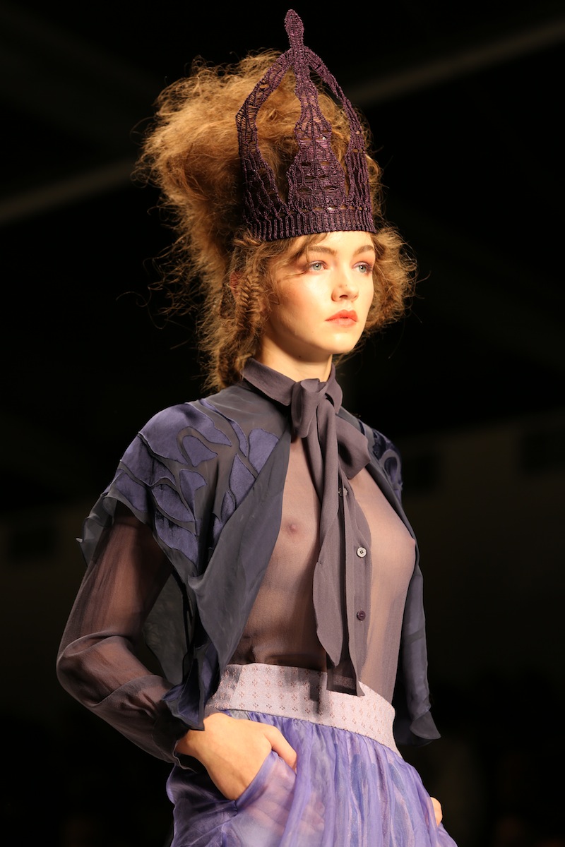 Turkish designer Bora Aksu impressed the catwalk show today with his S/S 13 collection. Layered dresses in pastel colours were accompanied with minimal accessories to really hold the emphasis on each dress—simple but elegant clutch bags. The main attention-grabber was the extravagantly woven crown-style headpieces, reflecting on the inspiration Bora has taken from Queen Victoria’s grand-daughter, Marie, who became the Queen of Romania in 1922. When asked about this inspiration Bora states: “The way she embraced traditional Romanian culture without losing her Englishness led to a lot of beautiful references.