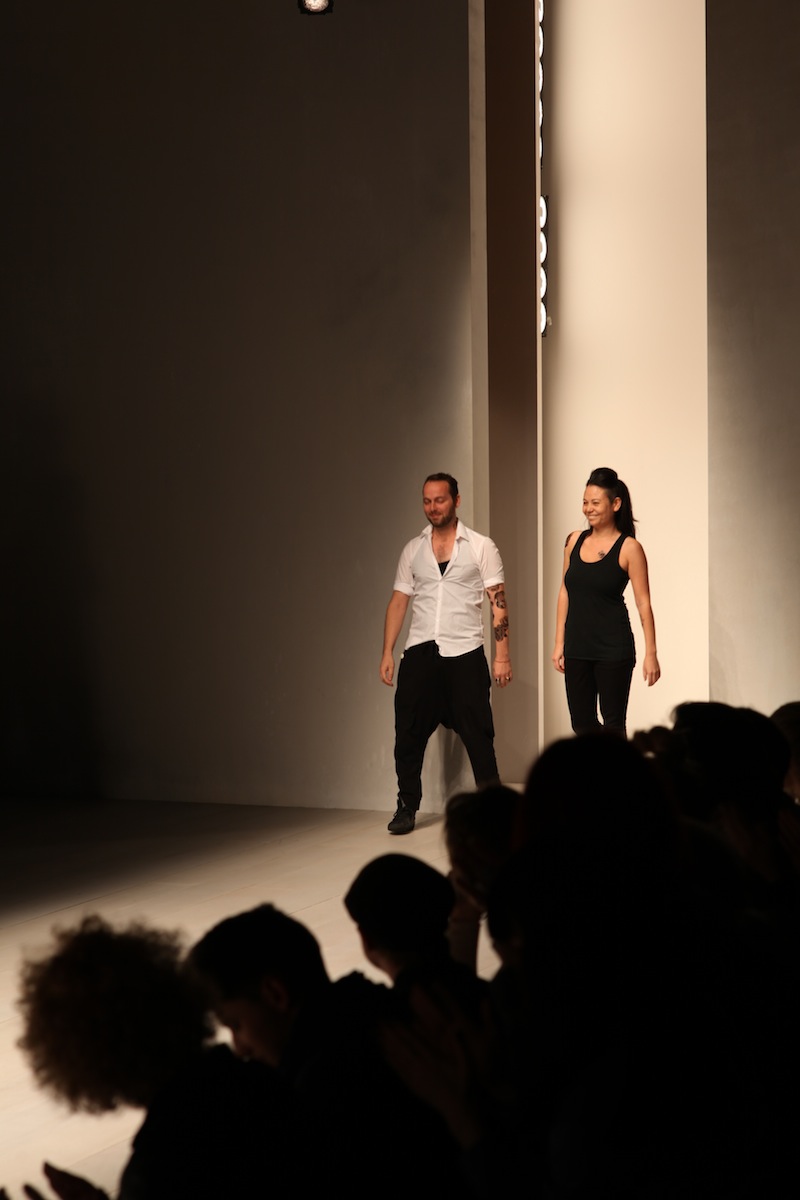With this being just her third collection as an official designer, we are already starting to see an ethos that is shaping the Phoebe English brand: black, white and more black! Her previous collections saw her experimenting with leather and latex and causing a stir when being accused of attempting to “sell sex” through fashion. Not wanting to give up her reign of controversy just yet, she has continued to use these influences within her SS13 collection through styling her models using metal mouthpieces by jewellery designer Reid Peppard. Their skin was dusted white and portrayed an almost ethereal glow through the use of event sponsors The Body Shop and their skin care range