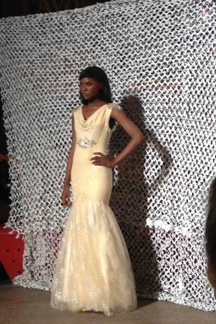 An ivory silk maxi dress complete with various coloured beads and feathers, along with a mermaid style tulle gown fully embroidered with gold sequins were the praiseworthy pieces of the show.