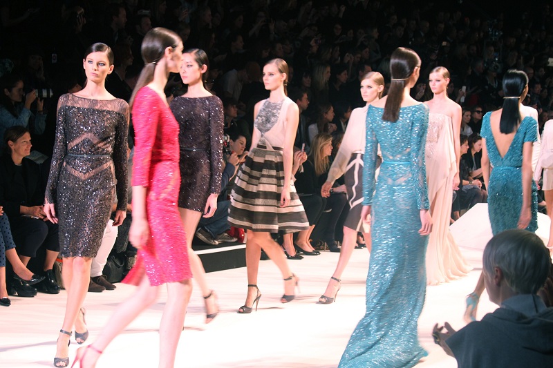 Elie Saab’s collections are classically ethereal and soft. He designed, yet again, a sophisticated and perfectly consistent show. Bright blues opened the show and transcended into light pinks and whites. Saab also incorporated colourful watercolour looking prints into long maxi dresses with sharp black lines. Chiffon gowns with touches of lace and sprinkles of clear sequins created an old Hollywood feel. Beautiful silhouettes were ultra-flattering. The same gowns then came down the runway as knee-length forms. Saab also featured structured and vibrantly coloured handbags.