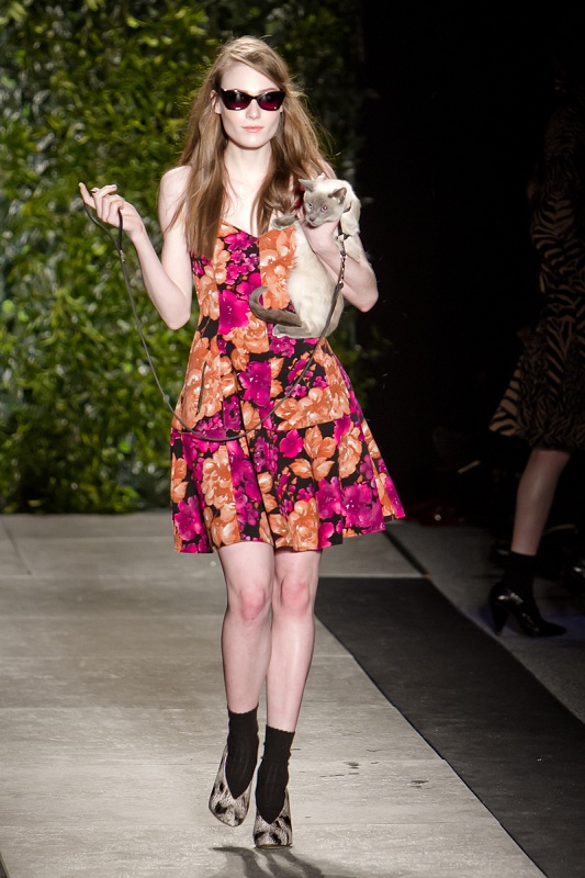 If you take anything away from this show (other than the fact that a siamese cat is definitely A/W 2013’s cutest accessory) let it be that next season will bring variety. A-line skirts, tight trousers, pencil skirts, baggy trousers, pleated leather and sequins all combined really do paint a picture of an overly feminine woman that still has the power the get want she wants.