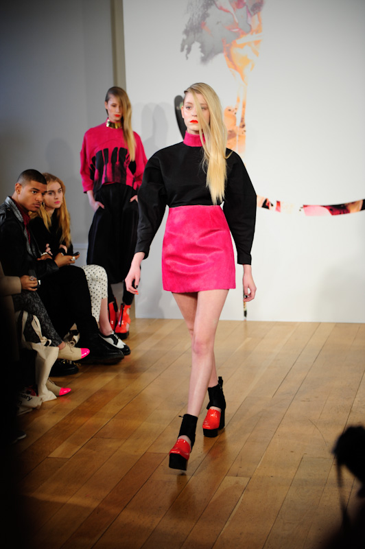 Designers Jenny Holmes and Dimitris Theocharidis presented their fierce A/W 2013 collection in the Portico show space at Somerset House today for London Fashion Week.