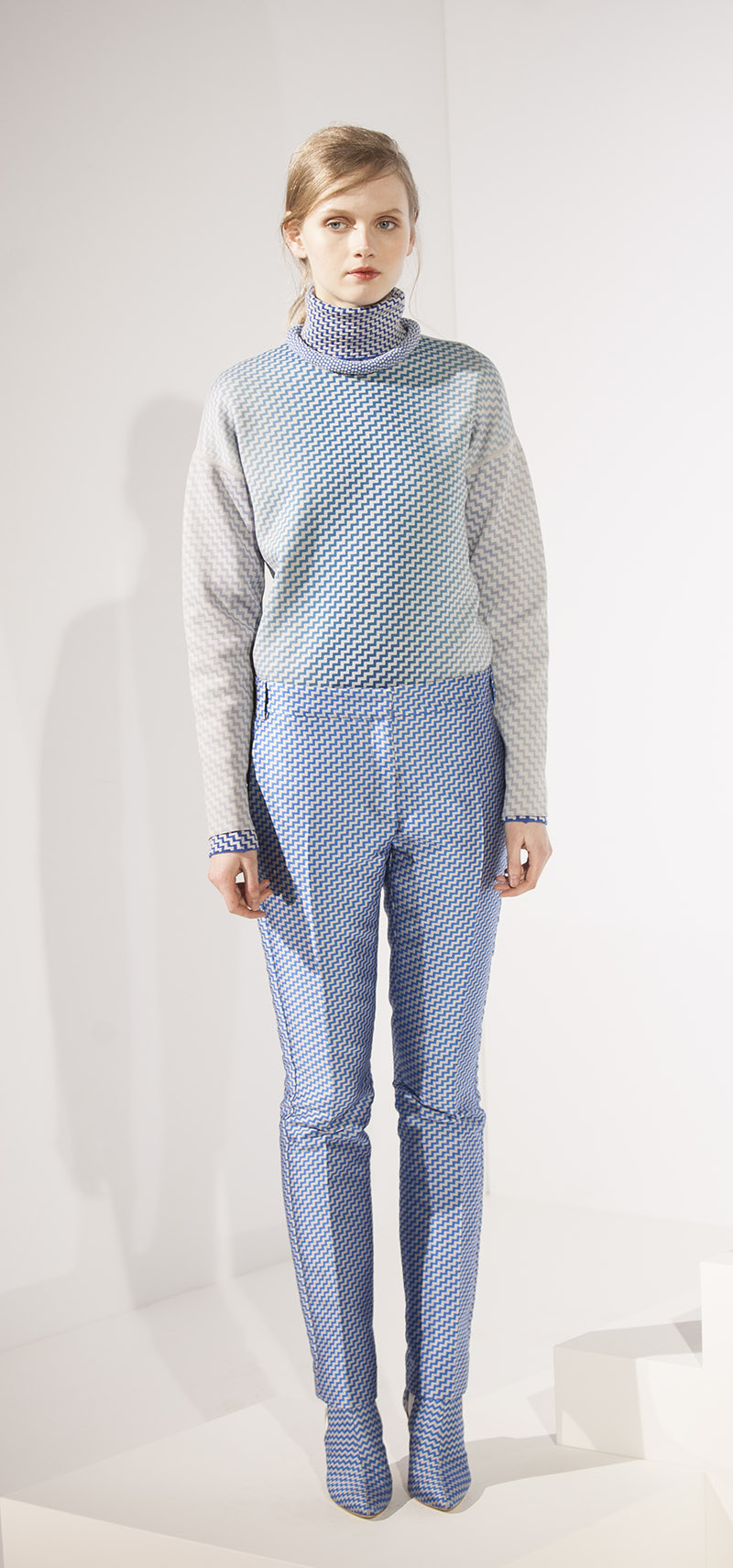 Clean cut structures were brought together with a delicate palette of duck egg blues and caramels, creating a lovely sense of warmth for the winter season. Knitwear continued, in true Pringle style, to be worn as outerwear and in pretty knitted dresses.