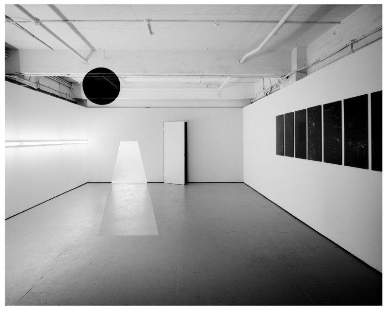 The two works which occupy the long walls of the main room, Light Horizon and Asphalt Black 1-8, are of particular interest. The simplicity of Light Horizon is oddly emotive and fits in providentially with the Light Show at the Hayward Gallery. The photographic work, Barstow Site 1 is also an interesting piece, mediated through the delicate interplay of light.