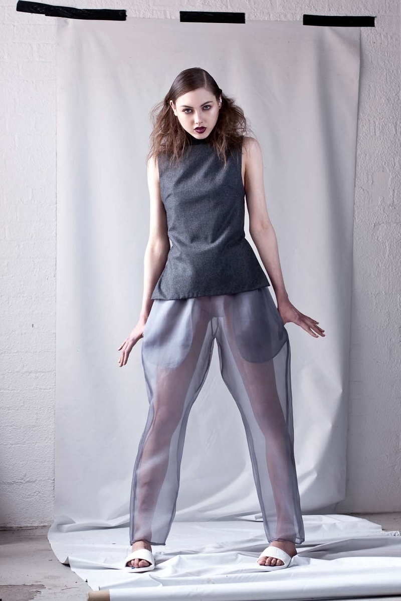 The clothes exude a daring and fearless energy channelling androgynism, whilst still being attractive and feminine. Our favourite look from the collection is a sleek Lycra black high-neck top paired with a clear chiffon side-split black skirt which embodies dominance with a ladylike edge. We also love the white chiffon t-shirt dress, epitomising girly chic.