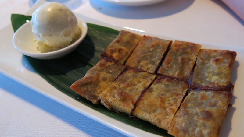 On the verge of being full to burst, we shared the Min Jiang Sichuan Pancake with Cornish Vanilla Ice Cream for dessert. Filled with red bean paste and pan fried, they had a lovely crisp exterior and soft core. The red bean paste is tasty and wonderfully unusual as it is almost savoury. The vanilla ice cream was glorious with the dish, as it added that necessary sweetness.