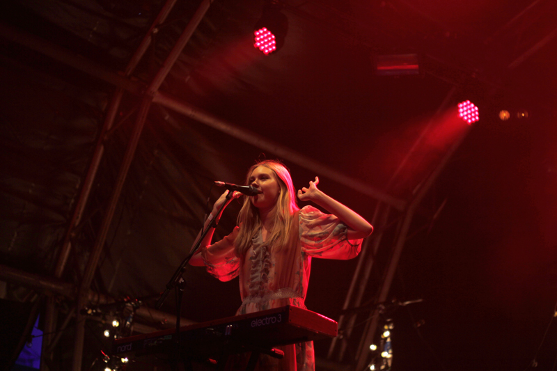 Johanna plays the keyboard and provides the harmonies, singing in a slightly less pure tone but all the better for it. The sisters never once veer out of tune with each other. The stories they tell in their folksy style are achingly beautiful. Their sound is made all the more enchanting by the simple scattering of fairy lights around the stage, which make them look and sound angelic in a hippy paradise.