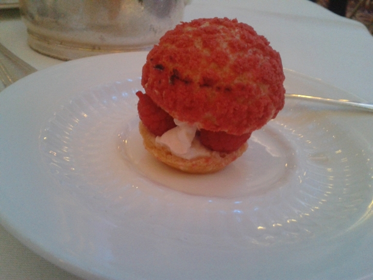A Raspberry Cheesecake Choux Bun had a creamy filling, including plenty of fresh fruit, and an overly-sweet Strawberry and Elderflower Jelly White Chocolate Panacotta and Roasted Peach was speckled with gold leaf, and looked like a jewelled trifle. Carrot Cake and Vanilla Crème Brulee Fruit Tartlet were both scrumptious and a dainty Chocolate, Rum and Caramel Slice had a glorious praline flavour, enriched with hints of coffee – sublime!