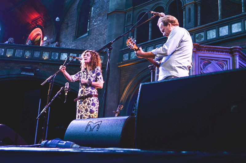 Don’t Let Me Die in Florida is dark melancholy blues with a title borrowed from a plea by Griffin’s late father; Waiting for My Child oozes raw emotion; Ohio, the lead single from American Kid (which features a collaboration with Robert Plant on the album version) is a standout track combining rich soulful lyrics with a distinct country guitar twang as Griffin’s guitar sounds off against Pulkingham’s. Griffin demonstrates her range with playful spoken word on Stay on the Ride, and The Strange Man from her gospel album is perfect for her gravelly uplifting vocal. The held notes on Chief seem to go on for minutes amid celebratory cries from the audience, and Top of the World rises over the ground floor audience and those seated in the balcony right to the roof of the Chapel. Griffin comes into her own on No Bad News, beating her guitar and the floor beneath her feet into submission while Pulkingham hits the tambourine with equal force, resulting in a sound so vast that it belies the number of people on stage.