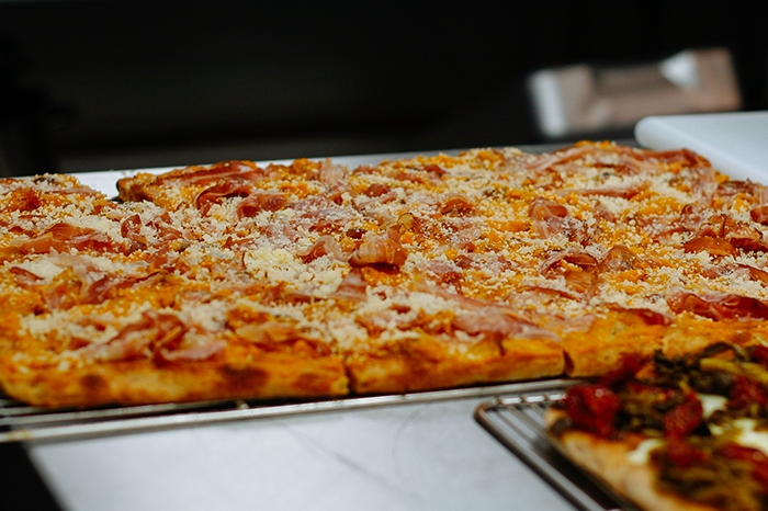 Melted mozzarella and oven-roasted tomatoes were teamed with pickled Frijarelli (broccoli rabe) to create one of the best vegetarian pizzas ever tasted, and Pumpkin Purée, Pancetta and Grated Pecorino was a garlic-infused, sweet and salty standout. Aubergine Parmigiana and Calabrese, a sausage pizza from Calabria, were also flavoursome but Margherita, loaded with chunks of fresh, torn mozzarella, oozing liquid with every bite, was messy to eat.