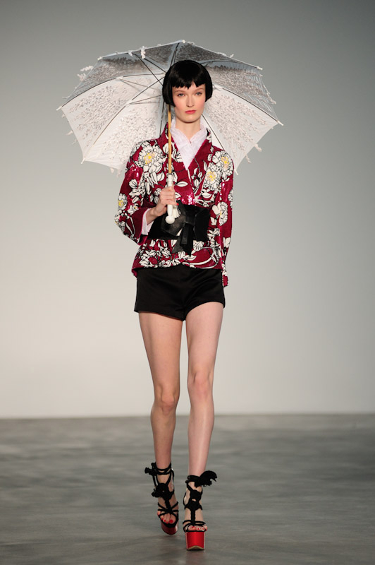 Kimono sleeves, thick sashes and a vivid palette were the basis for her latest line but the Japanese inspired fashion was modernised with pencil dresses, A-line skirts and thigh-high splits. Although the stunning set was clearly influenced by ancient Asia, L’Wren Scott was able to make the garments contemporary with her use of fabrics, shapes and styling. If the pattern is Japanese sourced the design of the article will be modern with the colours on trend, therefore keeping the outfit current and fresh.