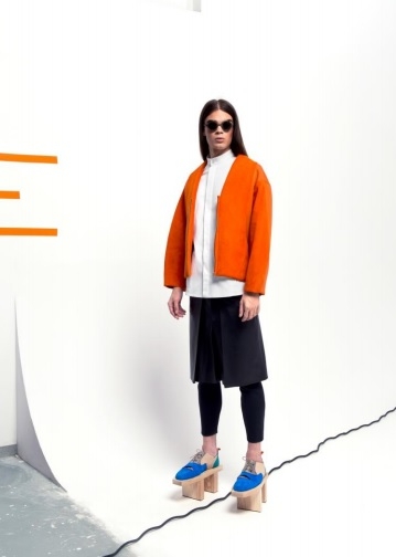 The eclecticism is quite clearly reflected in the choice of fabrics used in the collection. Silk satin and organza with rather surreal palm-inspired prints is juxtaposed with a peculiar texture of salmon leather and organic patterns of laser-cut neoprene. This strong contrast is softened by the delicacy of cottons or the texture of velvety suede. Bold colours complement the experiments with textures. Truly intensive orange is mixed with royal blue, lime yellow and with slightly toned-down prints.