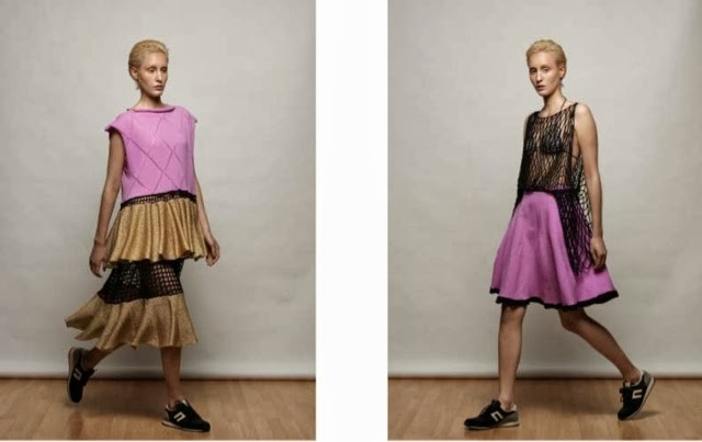 Everything is 100% handmade or hand loomed on domestic machinery and is naturally and ethically produced in Europe. Using only three pieces of yarn for its creation, Ryan focuses the theme for the collection on popular S/S 2014 colours: lilac, black, white and gold lurex. This showcases Ryan’s growing progression from last season as he continues his development as an established designer.