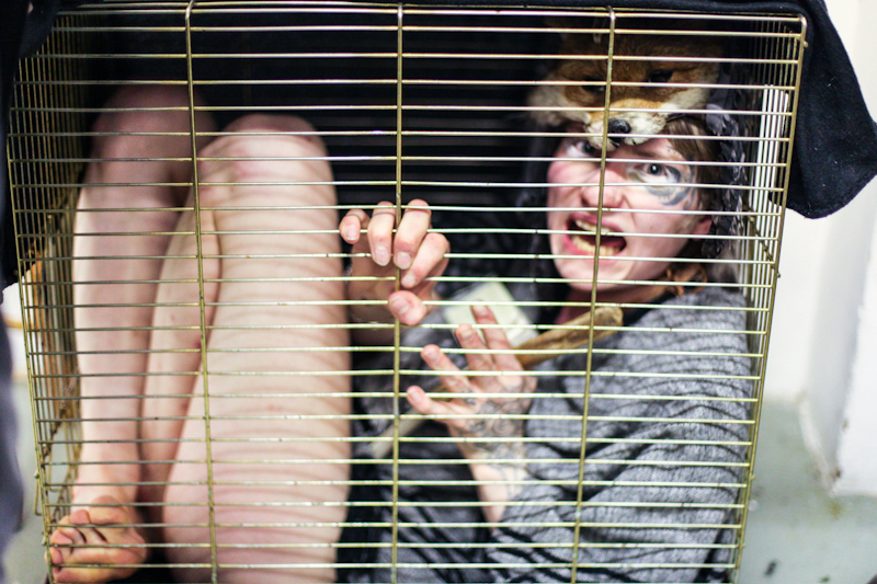 The closest thing to still life here is a stuffed fox on the wall chasing a stuffed hare. Most similar to an archetypal portrait is a woman dressed as a maid looking absent while holding a dildo. Nearest to classic sculpture is a creepy, phantasmagorical, blindfolded little girl eating (or spitting out) dirty braids. These artworks, created by Jodhi Brown-Needham, Sara Le Roy and Paul Toupet respectively are just a taste of what is on show at the fourth instalment of Modern Panic, the saga created by Guerrilla Zoo and curated by James Elphick.