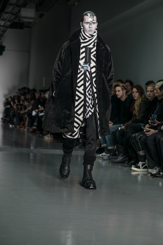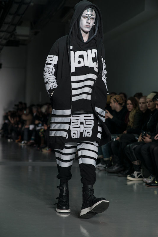 From metallics to icy whites, the models haunted the runway in tribal patterned coats, hoodies and shorts over leggings. Providing wearable yet outlandish street wear, the popular designer provides an out-of-this-world alternative to classic pieces.