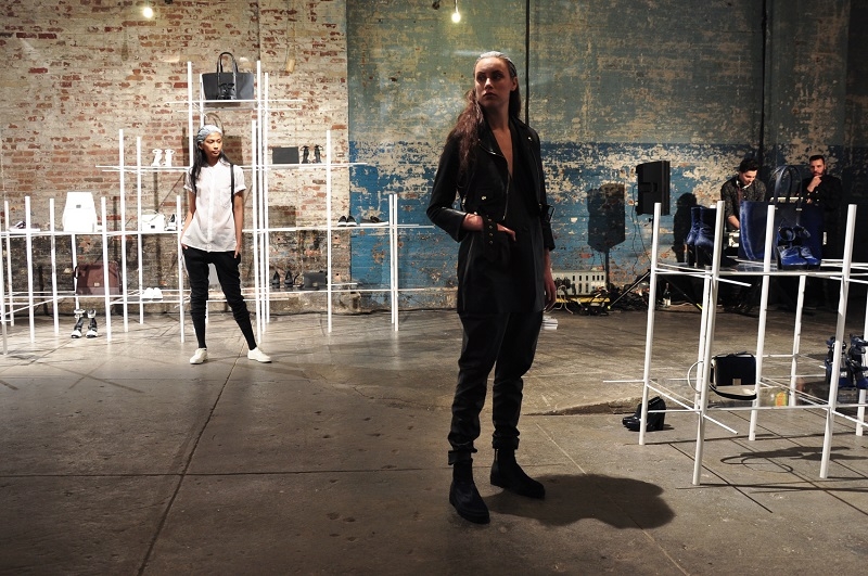 On Wednesday, up-and-coming accessories designer Karen Gallo presented her autumn/winter collection of shoes and handbags, in the perfect setting of Industria Studios, Chelsea, NYC. The bare bones warehouse design of studio 10 was perfect for Gallo’s suave and edgy works. Gallo was born in Colombia and raised in Queens, taking inspiration from her mother and grandmother, both of whom enlightened her to the world of fashion and design. She studied at the Fashion Institute of Technology and has made her way from stylist and fashion consultant to fully-fledged designer.