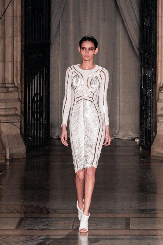 From the moment the first show-stopping dresses walked down the runway, we already understood the tone of the show and Julien’s new collection. The presentation started off with dresses from neutral tones, then moved on to dark, colourful pieces before finishing off with even more textured dresses that combined that entire feel and taste of the overall finished collection. The dresses were simply fierce pieces, that literally sparked down the runway with main colours including gold, silver, neutral and metallic.