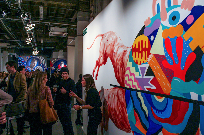 The larger-than-life canvases dominate the basement studios of Bloomsbury’s spectacular Victoria House. It is fitting, considering their worldwide adoration, that the footballers tower over exhibition viewers in an almost godly way; none more so than Chelsea’s David Luiz, whose famed afro-style hair forms the centre point of Ricardo AKN’s piece, whose final creation features gleaming-coated rams with glossy curls not unlike Luiz’s own. David is on site and looks excited as he signs autographs and takes pictures with his fans.