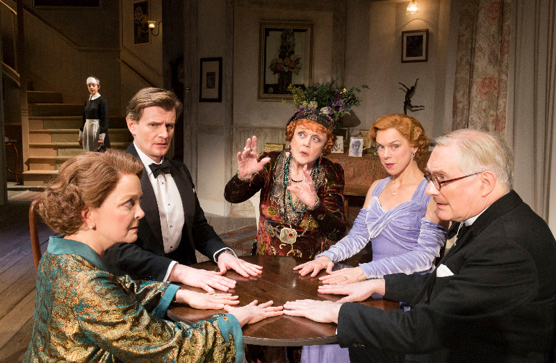 The rest of the cast splendidly keep up with Lansbury in this wordy and witty play. Jemima Rooper plays Elvira the naughty ghost, and Janie Dee as the uptight current and live wife is a marvellous picture of clipped annoyance. Patsy Ferran plays the maid Edith with hilarious physical comedy and timing, which makes her professional debut memorable. Serena Williams as Mrs Bradman, the doctor’s wife who continually puts her foot in it, is a brilliant foil for some of the most withering looks from Madame Arcarti. Charles Edwards as Charles, the husband whose wives, dead or alive, are the bane of his life, plays him as just the right sort of fellow who admits having been henpecked all his life, but has rather enjoyed it.