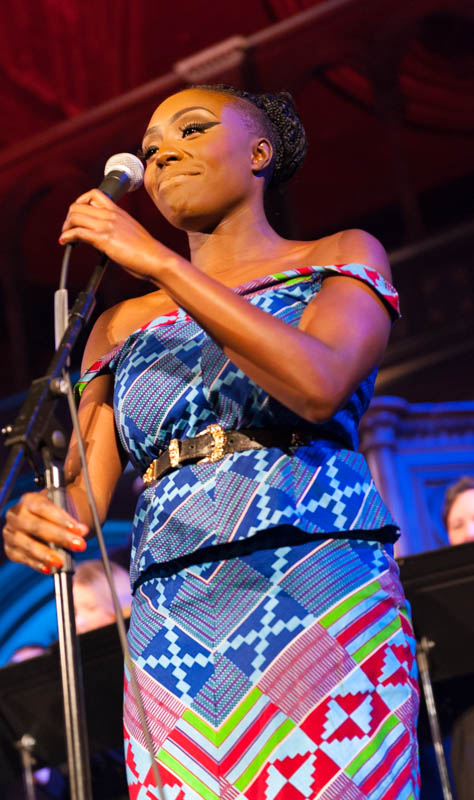 Another wow factor was supplied by Joby Burgess’ percussion, which exquisitely enhanced the music  – hauntingly tribal at one moment  and fantastically futuristic at another – by way of a host of unusual instruments, including toy bells and a so-called Canna Sonora. Whitacre’s choral version of Depeche Mode’s Enjoy the Silence featuring soprano Grace Davidson was the final piece to be performed before Laura Mvula returned to the stage to sum up the evening, leading the choir in crowd-pleasing gospel.