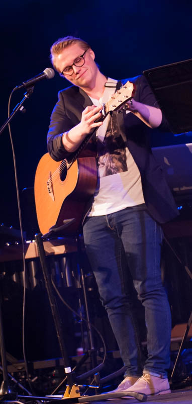 Another memorable piece – Saint Chapelle – began with a Gregorian-style male chant before expanding to include the female voices, arranged to evoke the idea of sunlight penetrating the the Parisian chapel’s famous stained-glass windows. This piece led immediately into a musical version of Odi et Amo, Catullo’s well-known epigram, lightly accompanied by young Norwegian singer Marius Beck’s guitar. With the following silence of the choir, the starlet began a performance of his simple and simply beautiful acoustic song Wrecking Ball, which moved the audience to loud applause.