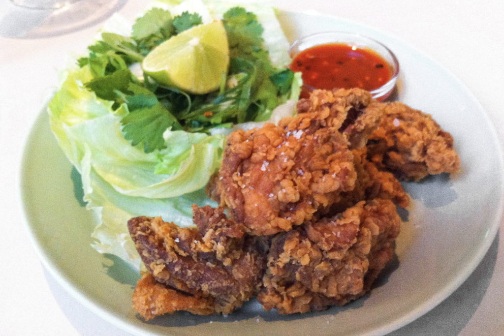 Small plates are perfect for sharing, so we opt for several. The Korean Fried Chicken, Iceberg Lettuce, Spring Onion & Chilli Sesame is a balancing act of fruity spice, crisp and sour but not bitter. Layers of fresh herbs and spices through everything elicit a freshness that is surprising amid so much tempura.