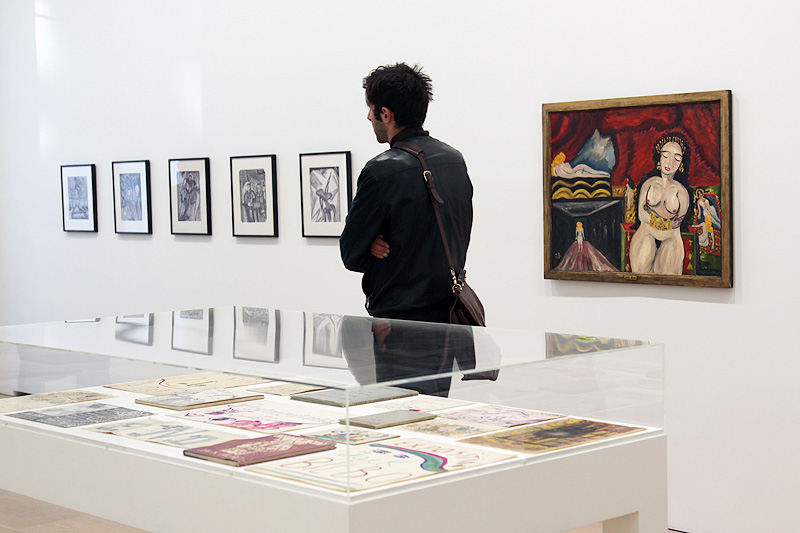 The eccentric drawings are somewhat difficult to decipher, with one example having no body, but buttocks and eyes for a body. Regardless of the unusual arrangement of body parts, it is clear that there is a justified and poignant reason for this arrangement. The works within the gallery demonstrate how just powerful a pen can be. Labelled across the top of a drawing is “If the state would give its writers, musicians and artists the same encouragement as its hallow-headed deferrals, there would be no wars”. Again, relevant to our society today; 70 years on and, though we think we have come so far in terms of societal progress, we still have a long way to go.
