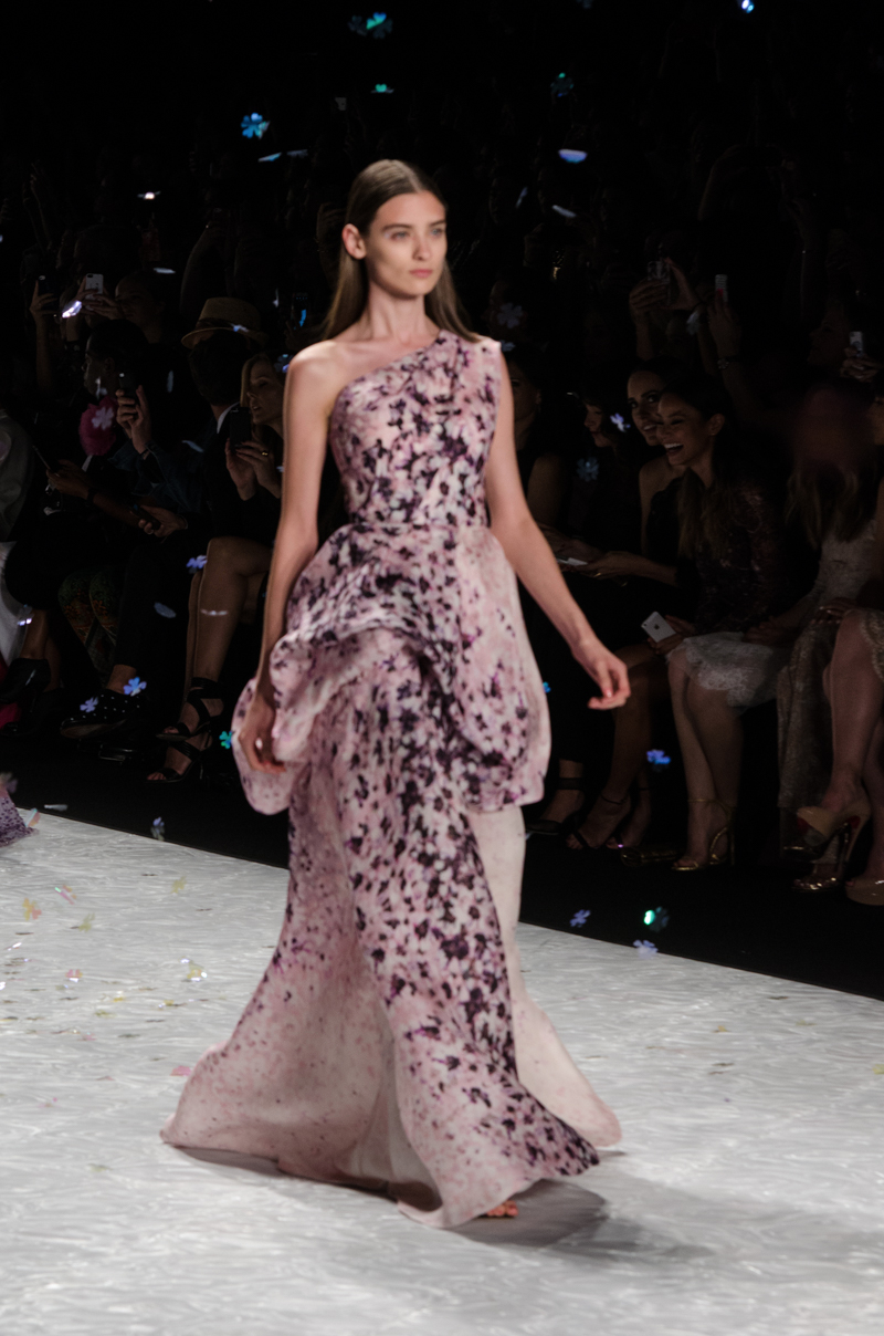 At the show on Friday, actresses Sophia Bush, Jamie Chung and Jennifer Morrison attended the show front row with a closer look at all of the elaborate details of all of the looks. Her signature soft designs whisper romance and attract the eyes of all. Lhuillier ended the show with petals of glitter falling not only on the catwalk but on everyone at the show as the finishing touches of the spring dream you didn’t want to wake up from.