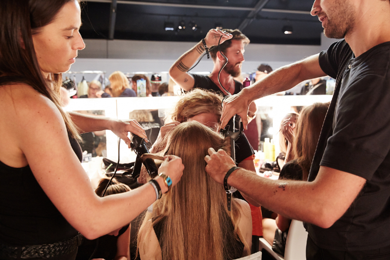 While fashion-lovers queue outside the venues, dozen of people are running behind the scenes to prepare every single detail. How many people take care of the beautiful models (and dresses) that we see catwalking on the runway?