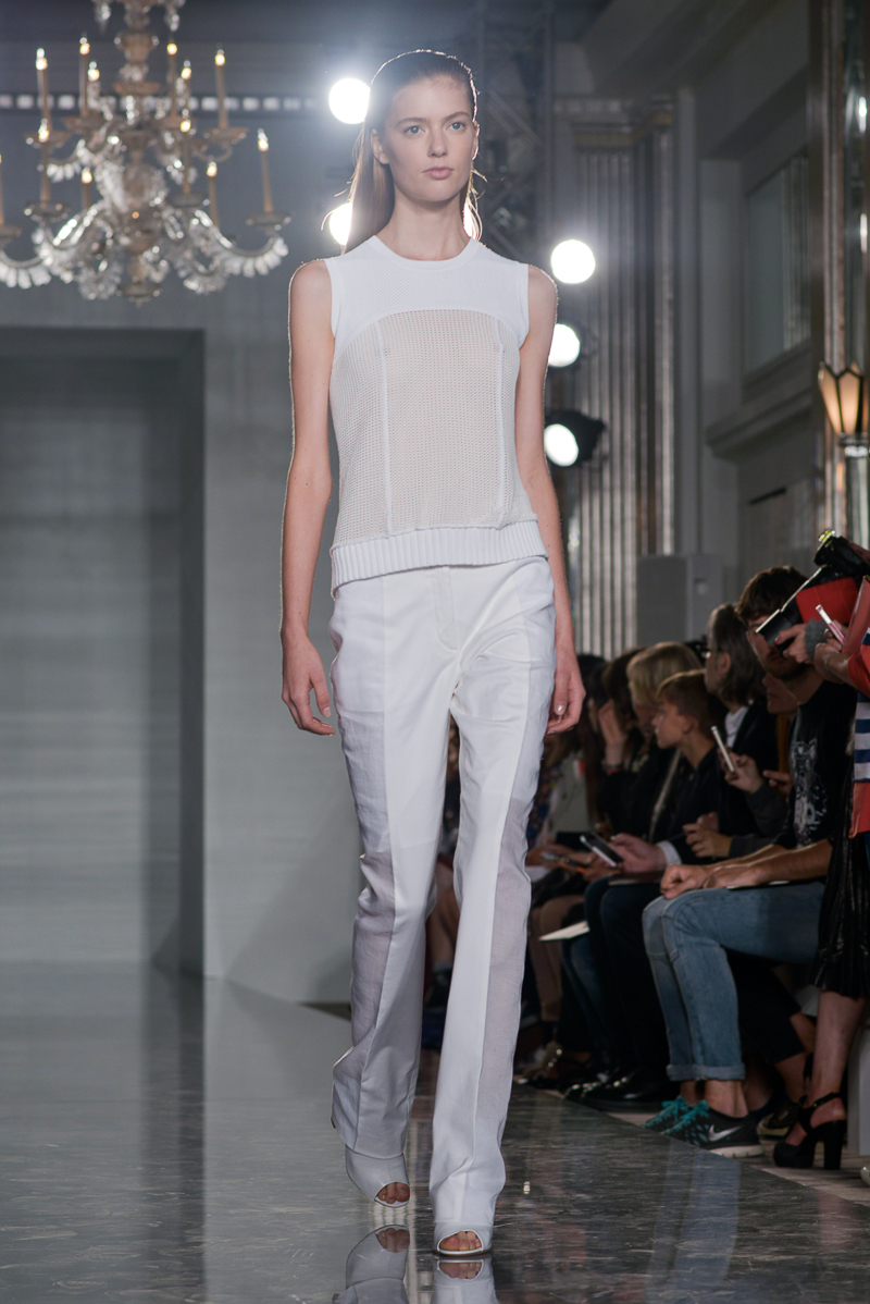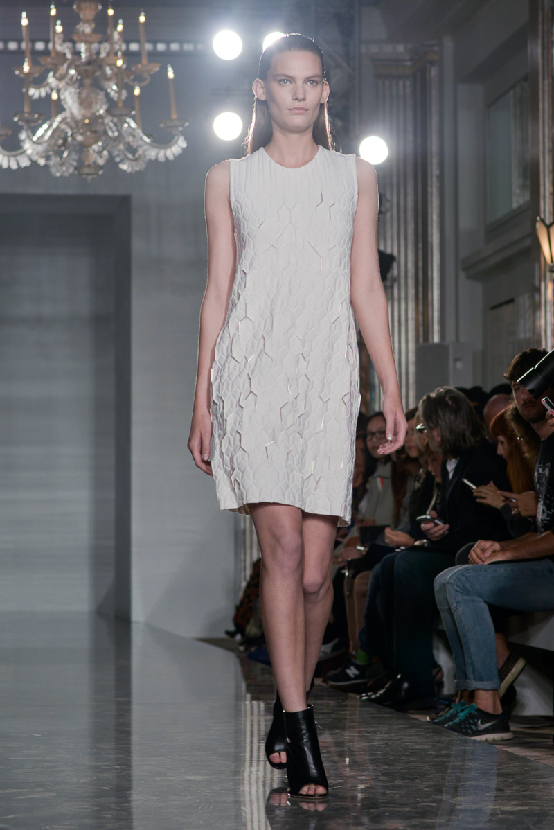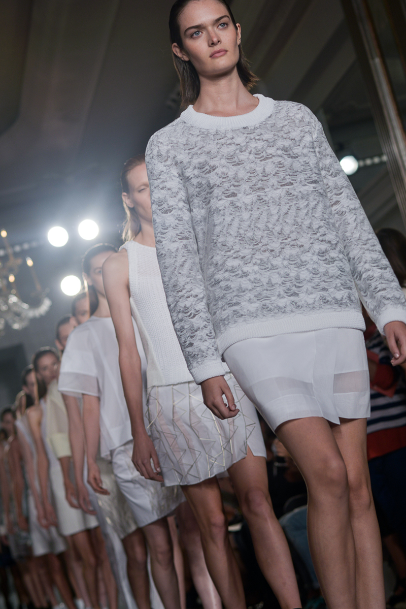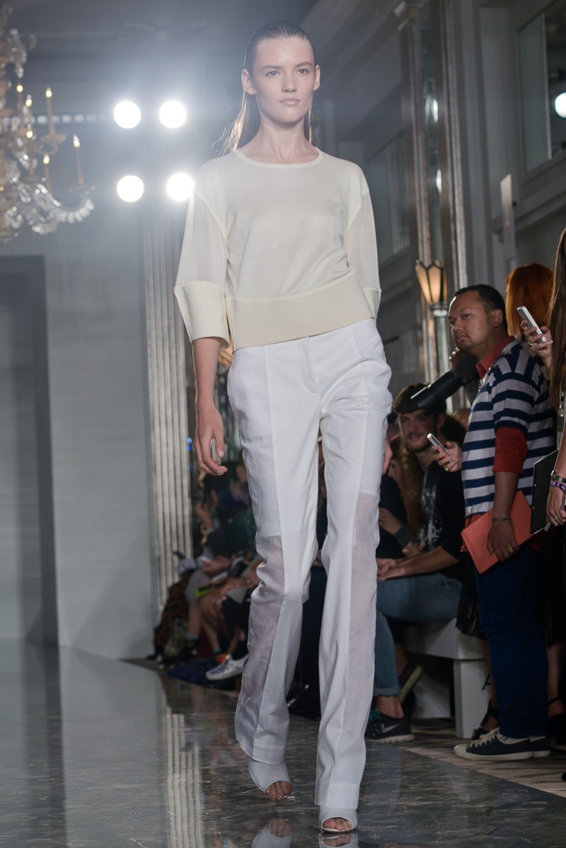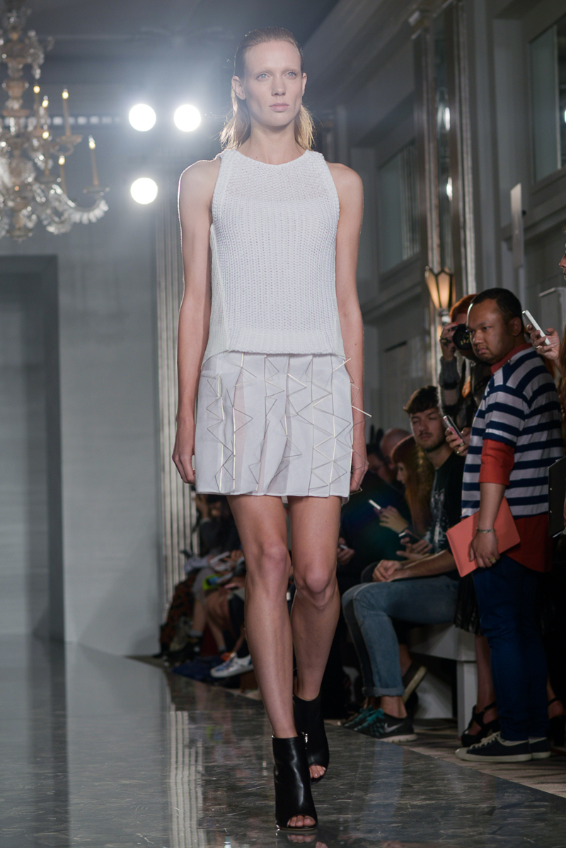 Pringle of Scotland presented an innovative spring/summer 2015 collection at Claridge’s Ballroom for London Fashion Week. The new looks comprise of a cold palette with intriguing detail and minimalistic features. Here are our images from the show.