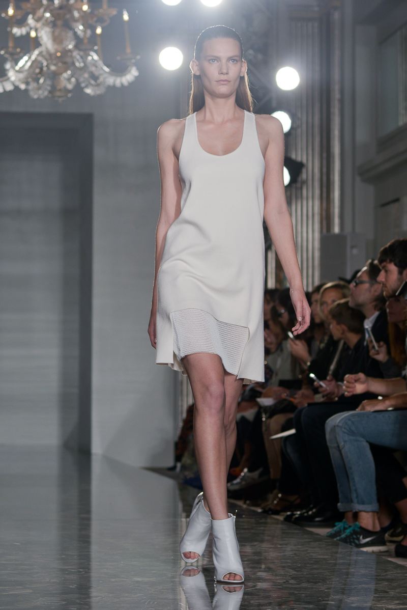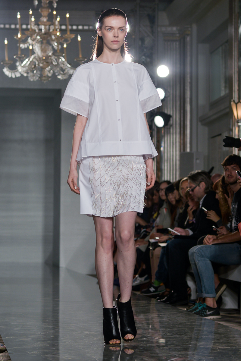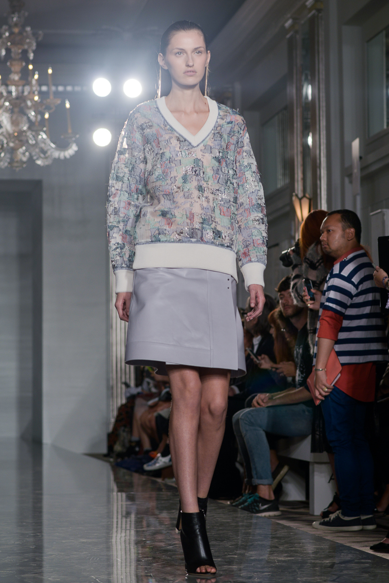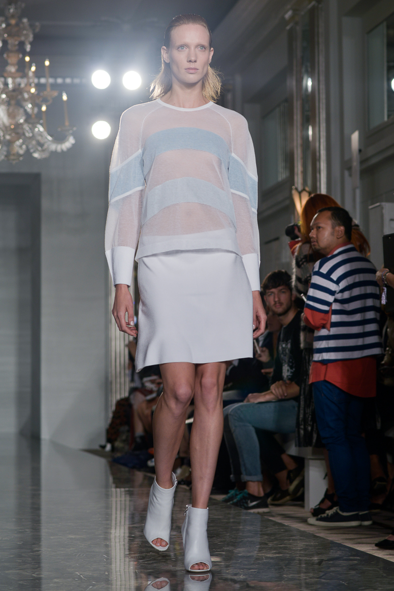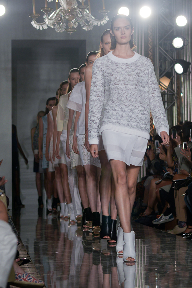 Pringle of Scotland presented an innovative spring/summer 2015 collection at Claridge’s Ballroom for London Fashion Week. The new looks comprise of a cold palette with intriguing detail and minimalistic features. Here are our images from the show.