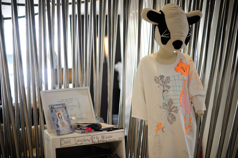 David Longshaw presented an innovative spring/summer 2015 collection at the ME Hotel for London Fashion Week. Some of the new looks were created in front of the audience with illustrations being drawn on to the dresses. Here are our images from the show.