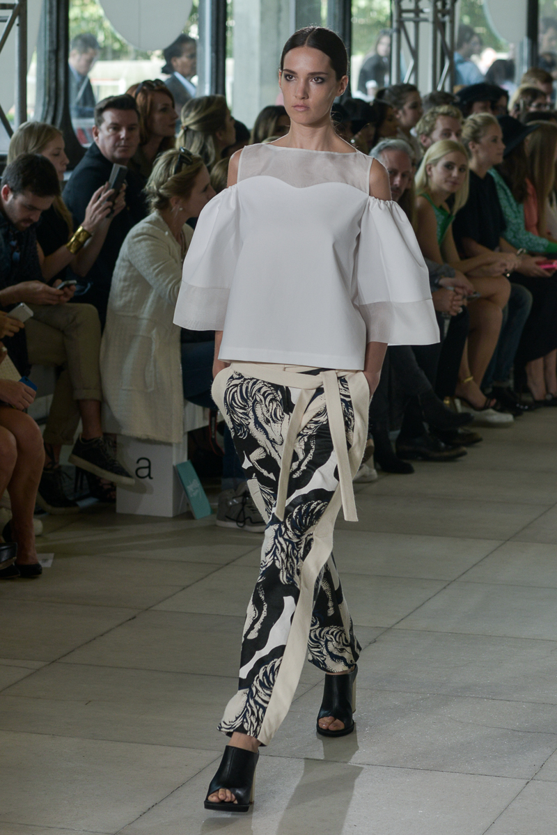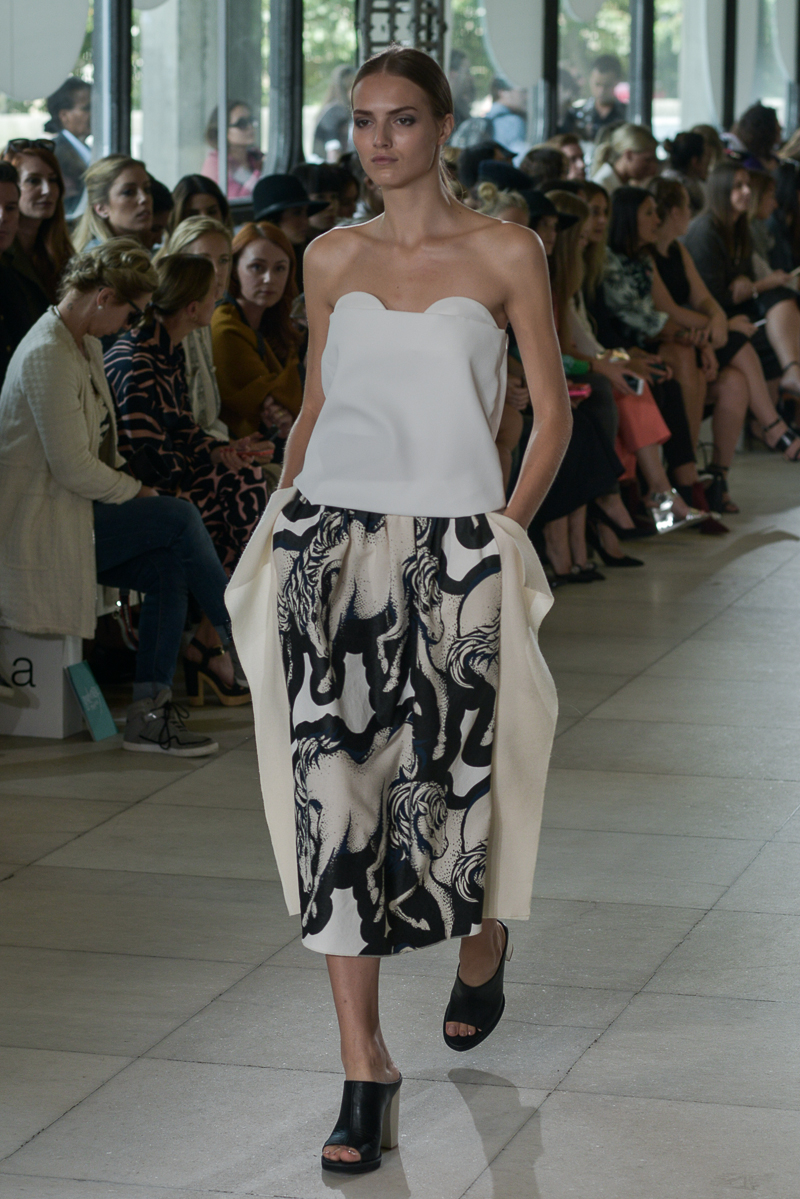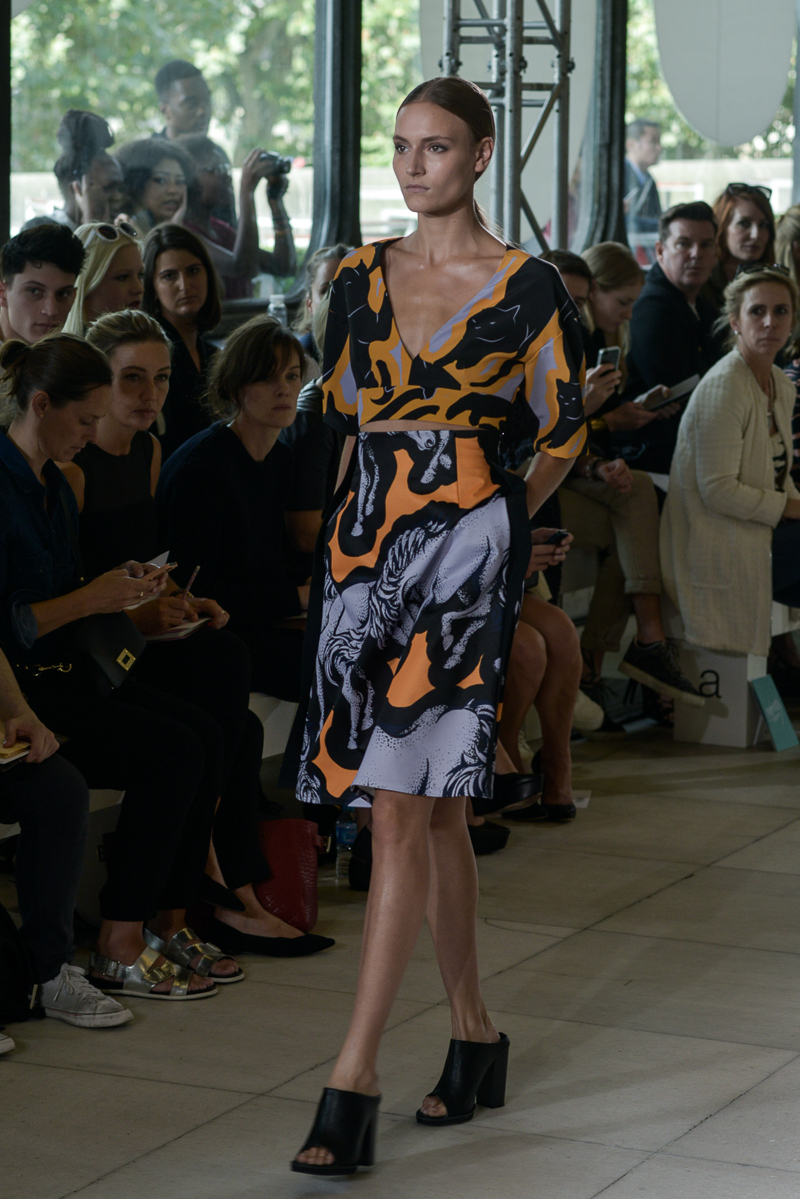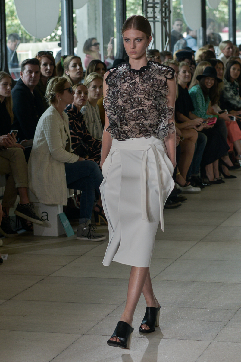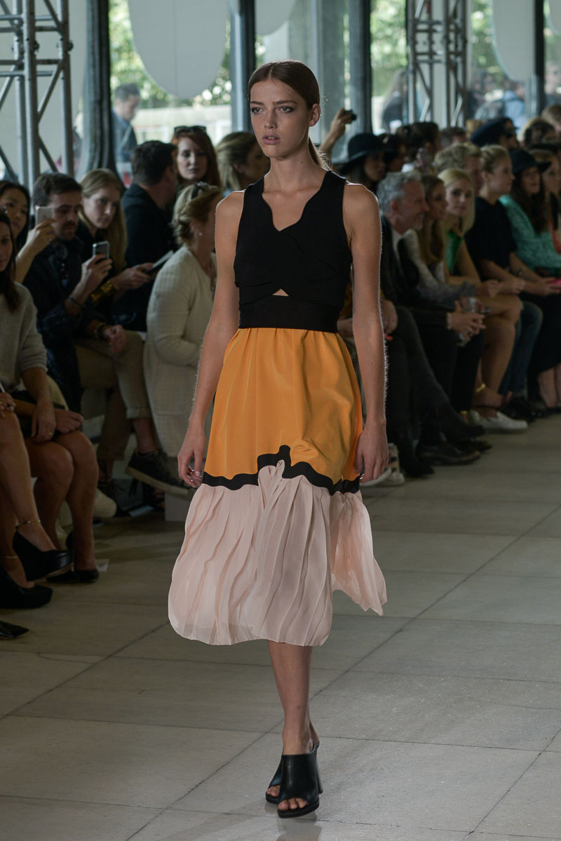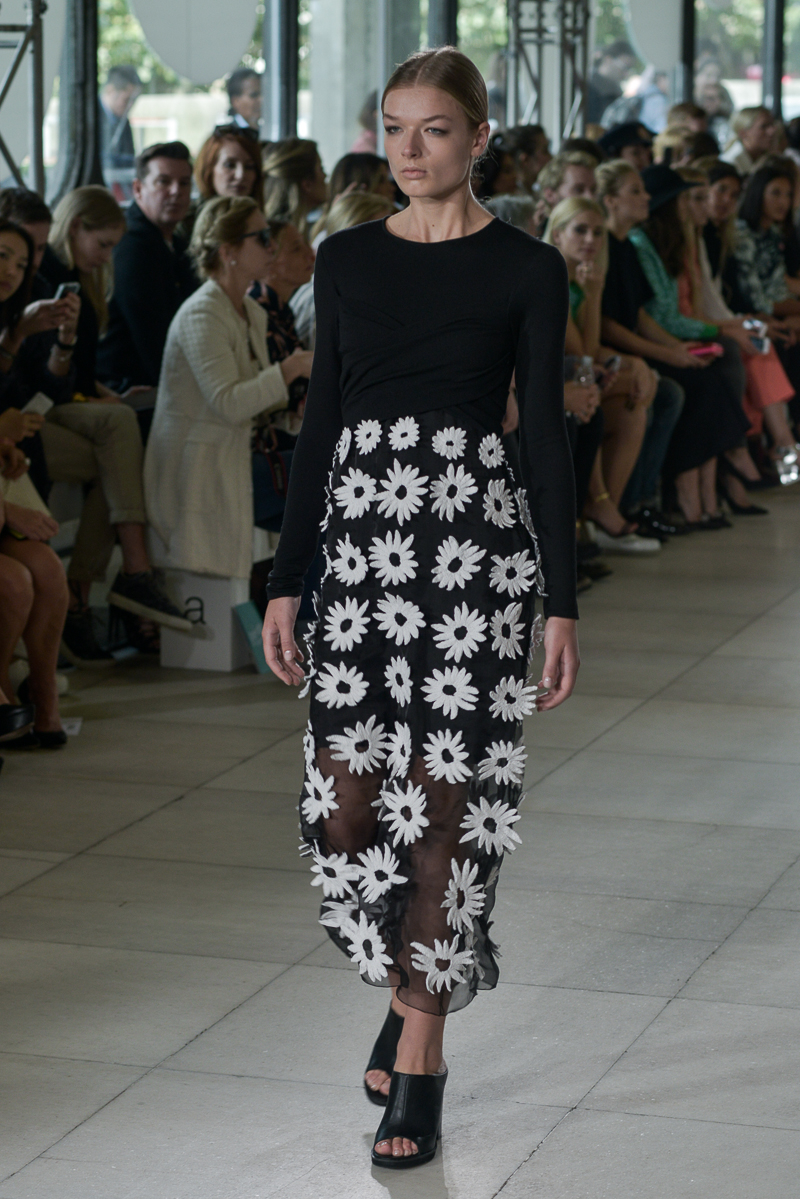 Issa presented a sophisticated spring/summer 2015 collection at the Queen Elizabeth Hall for London Fashion Week. The new looks were pretty and wearable, staying true to the brand’s signature “fit-and-flare” style. Here are our images from the show.
