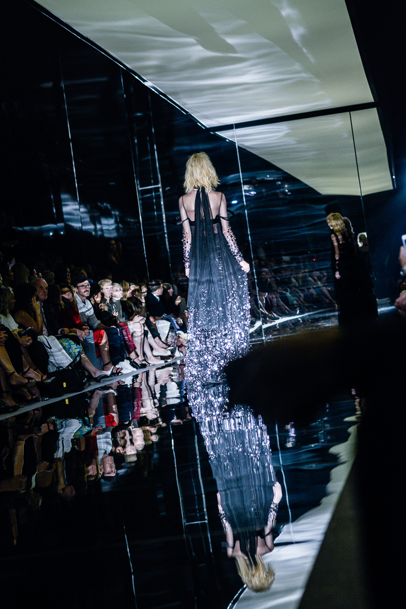Models also sported the signature Tom Ford look, tuxedo jackets that were cut to perfection. Looking confident, they strolled along gracefully in platform heels wearing the colours black, blue and bronze. Star guests Bradley Cooper and Anna Wintour were sure not to miss out as they sat side by side keeping their eyes glued to the runway with full concentration in the front row.
