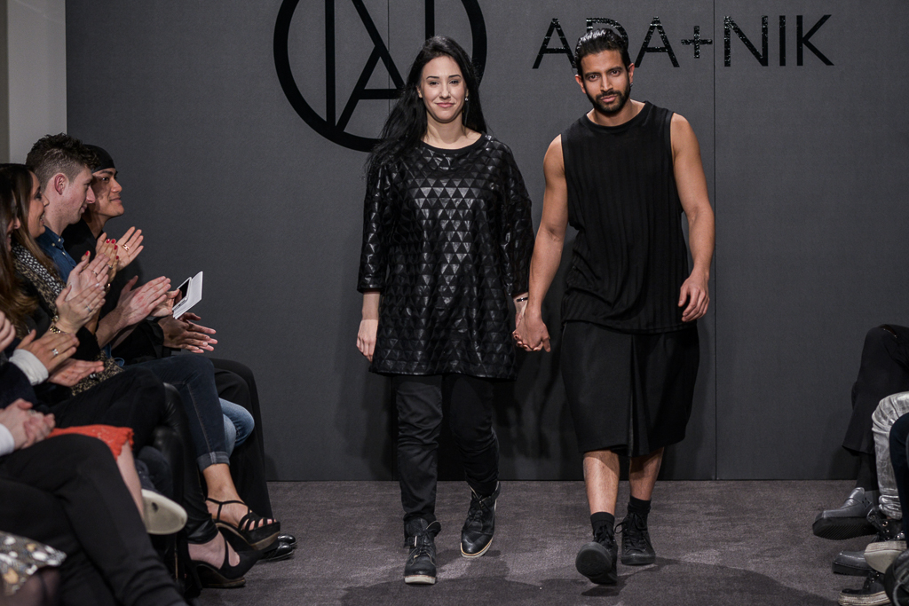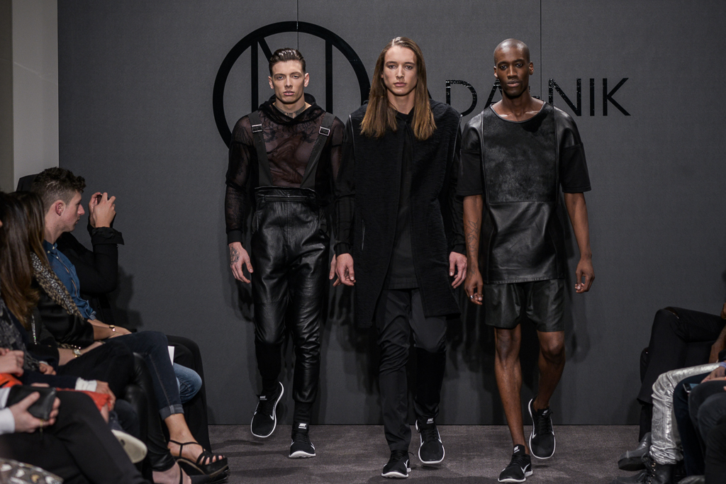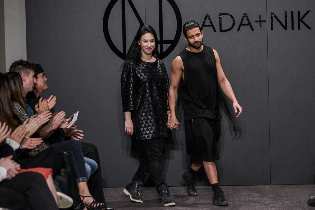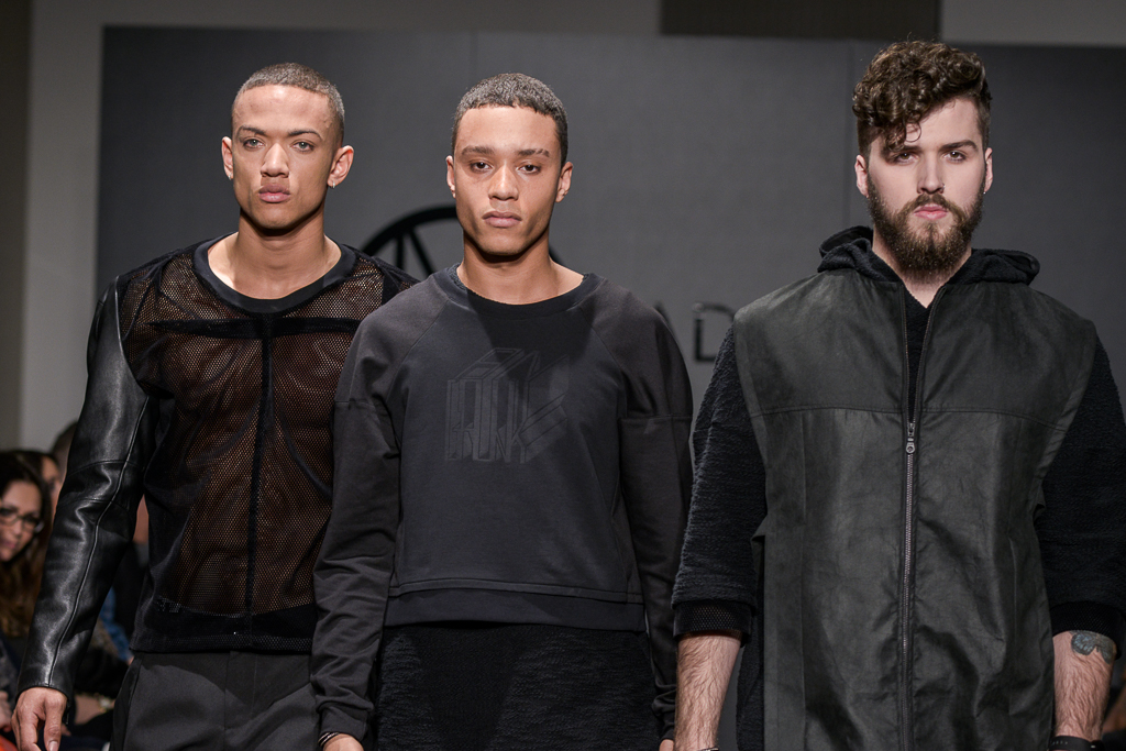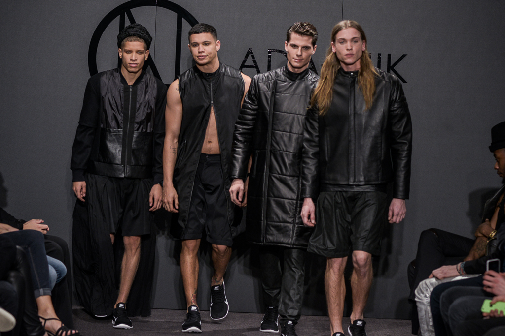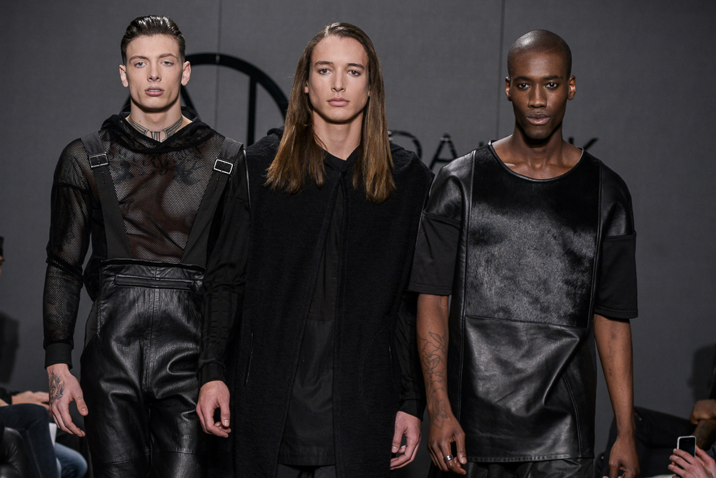 Ada + Nik presented a industrial-influenced autumn/winter collection at the ME Hotel for the London Collections: Men. The new looks featured fishnet tops and plenty of leather! Here are our images from the show.