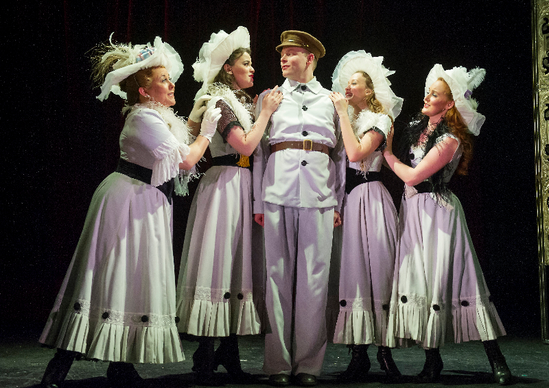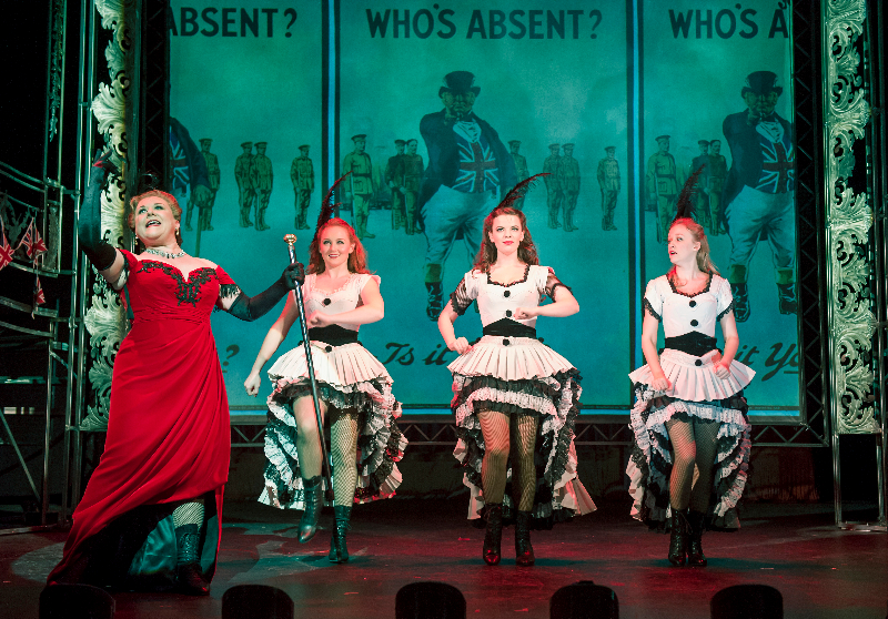 Throughout Oh What a Lovely War, the audience is never allowed to forget the casualties and deaths of the men who were sent to fight. There’s a running news reel above the stage displaying increasing statistics year by year, which forces us to acknowledge the numbers as people. Johnson’s montage technique of independent scenes and audience interruptions, however, ensures we never become too attached. The poignant scenes of death are immediately broken up with recognisable musical numbers from wartime, reflecting the tools used to keep Britons distracted from the realities of the Front during the war years. The audience sing along with the expertly executed performances on stage; some are flirty and funny while others are deeply touching.