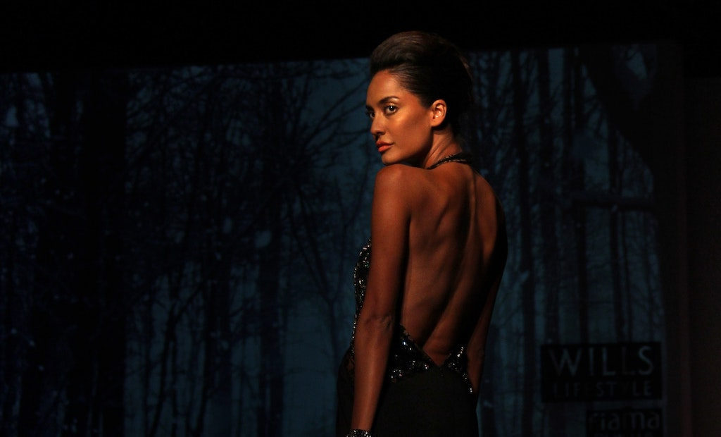 At first glance, the Armani Privé collection looked heavily influenced by Asia, but on closer inspection it quickly became clear that much of the inspiration came from bamboo. Conveying a message of delicacy and strength, the collection featured pieces which echoed Japan, from the soft silk fabrics to the oversized knotted belts and the muted, earth-toned colour palette. Bamboo remained key in this collection: images of the plant were embossed onto pieces, with its green leaves and tanned branches being the main colour reference.