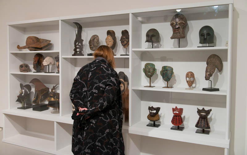 Hodgkin’s collection of Indian art is in a little mint-green room, while Dr Lakra’s space is a burst of colour, with pin-up girls and vintage magazines, old toys and dolls and his own scrapbooks. Pae White’s burst of colour takes the form of over 1,000 scarves, and Sol Lewitt’s black and white photographs represent the most minimalistic style of all. Jim Shaw’s interest in the undesirability of paintings found at thrift shops, and Peter Blake’s diverse collection of elephant figures, shop signs, masks and puppets, co-exist so naturally that it is hard to separate the artwork from the collection. Then, of course, there’s Andy Warhol’s collection of cookie jars – a symbol of ultimate domesticity, provoking a nostalgic sensation in the viewer.