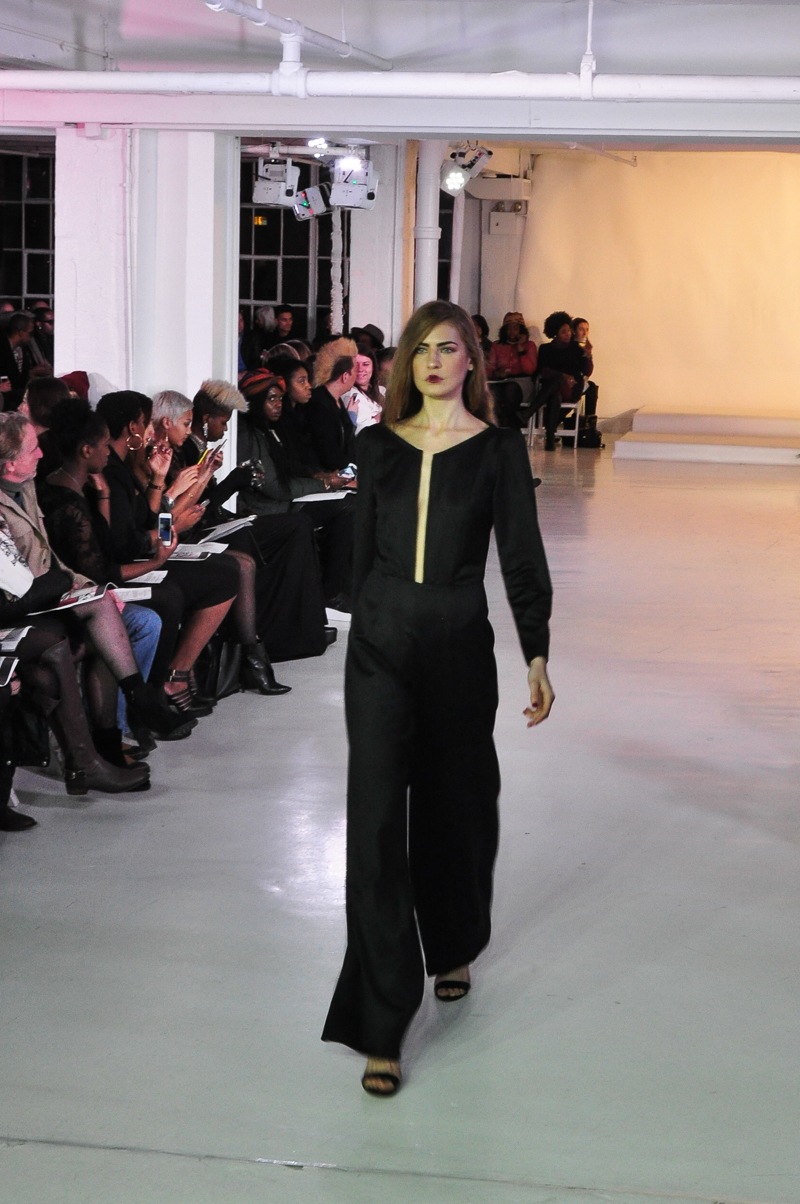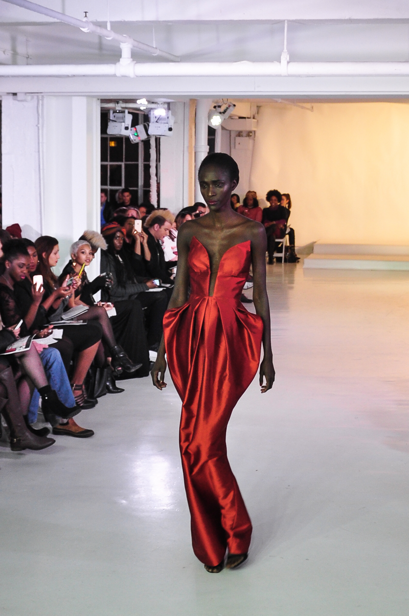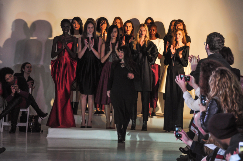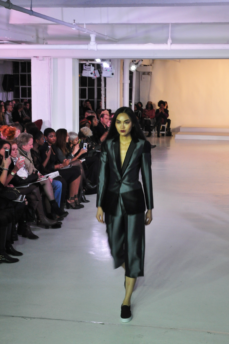 New York-based Julianna Bass’ collection was inspired by the city of Berlin, which manifested in luxury fabrics, structured silhouettes, classic but edgy and playful elegance and overwhelming feeling of modern femininity. Colors of deep red, black, ivory, burgundy on silk, lace, leather and silk wool dominated the runway and helped to get a sense of freedom and elegance of the modern woman. The music also reflected these contrasts and fluctuations. From hip-hop to instrumental music, the models seemed to be floating above the catwalk.