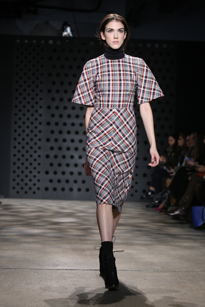ADEAM presented a clever autumn/winter 2015 collection at the Highline Stages for New York Fashion Week. The new looks were filled with oversized pieces, cosseting turtleneck knit dresses, asymmetrical skirts and bustier tops. Here are our images from the show.