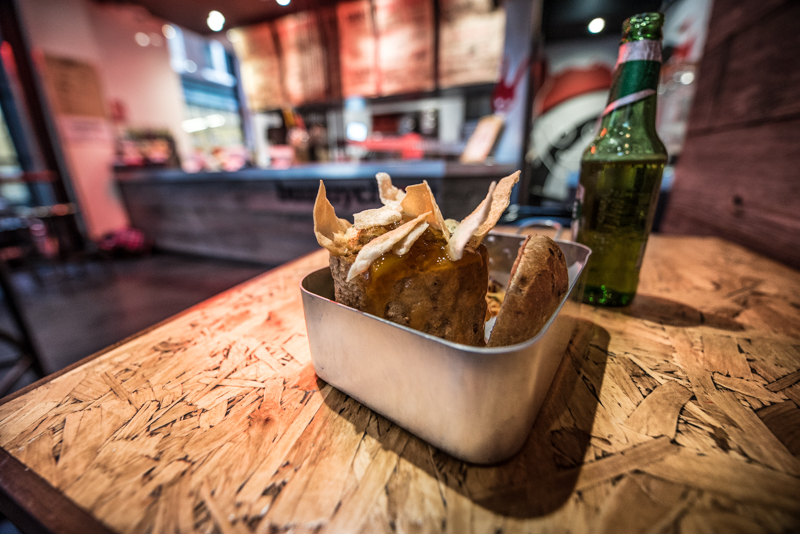 After starting life as a pop-up, Bunnychow has had a heavy South African revamp and now fits seamlessly into the abundance of eateries in Soho. If you had no idea that a bunny was a traditional South African curry in a hollowed-out bread loaf, then the first impression won’t give you any clues either. Think subdued red lighting, chain mail adorning the windows and casual stool dining. South Africa conjures up images of bright, colourful smiles awash with the green, blue, red and black of the country’s flag; it’s clear that Bunnychow is trying to spin its own tale from the traditional idea of South African street food – and it works.